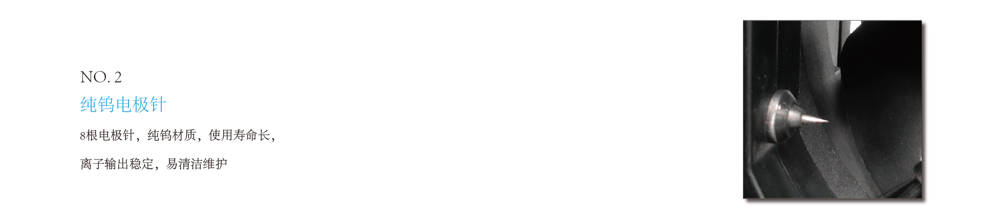 7、纯钨电极针,不易磨损,使用寿命长,易清洁、维护或拆卸更换,节约维护成本,安装方式可防灰尘堆积。