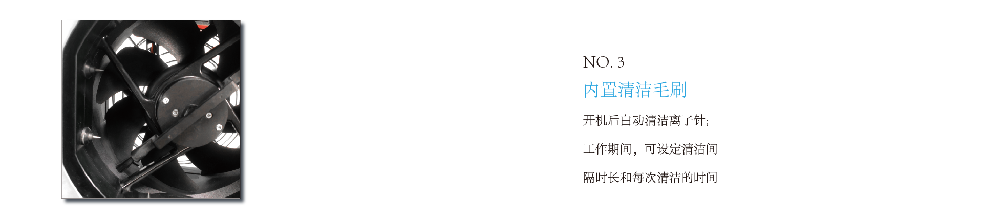 5、前置风扇,后置高压发射架设计,使高压电离的正负离子均衡释放。
