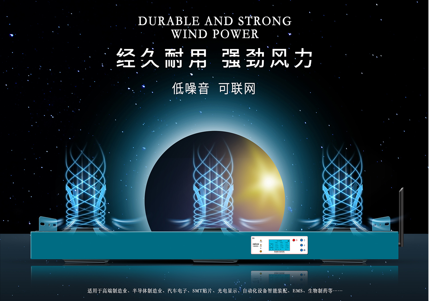 1.使用离子风机时,应将其放置于消除静电的工作区域内,安装角度应垂直于带电体表面。