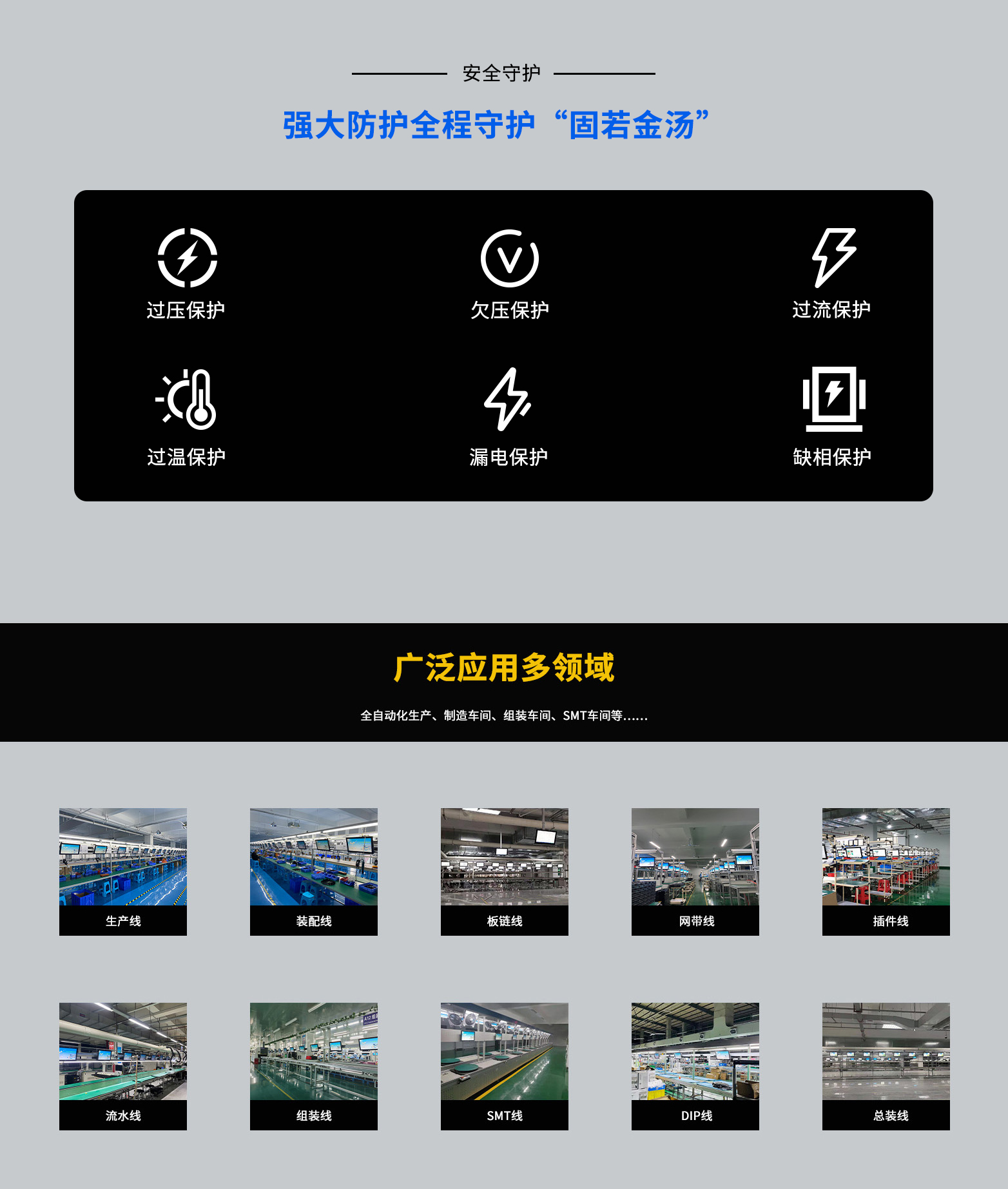 1、过压保护、欠压保护(线路电压高于过压保护值或者低于欠压保护值)